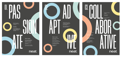 The final designs brought Neat’s refreshed brand to life across all touchpoints, building a strong, cohesive identity that resonated with its audience and supported its growth.